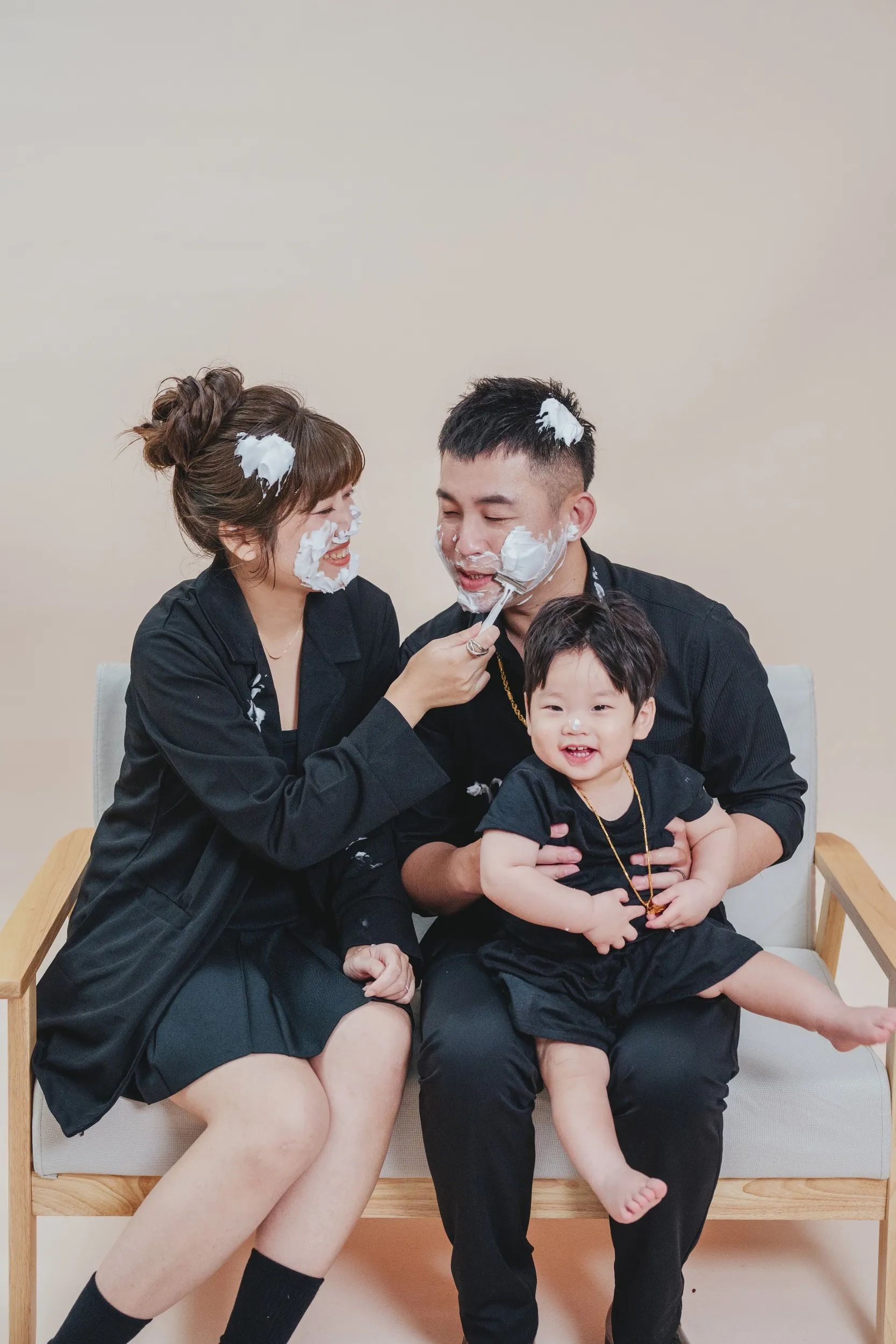 我們會在拍攝前先和家人溝通,把穿著、場景和期待的風格討論清楚,讓每個成員都有心理準備,也更容易放鬆進入狀態。若家中有具有回憶意義的小物、喜歡的道具,或想加入屬於你們的互動橋段,都歡迎一起討論,我們會把它們融入畫面裡。